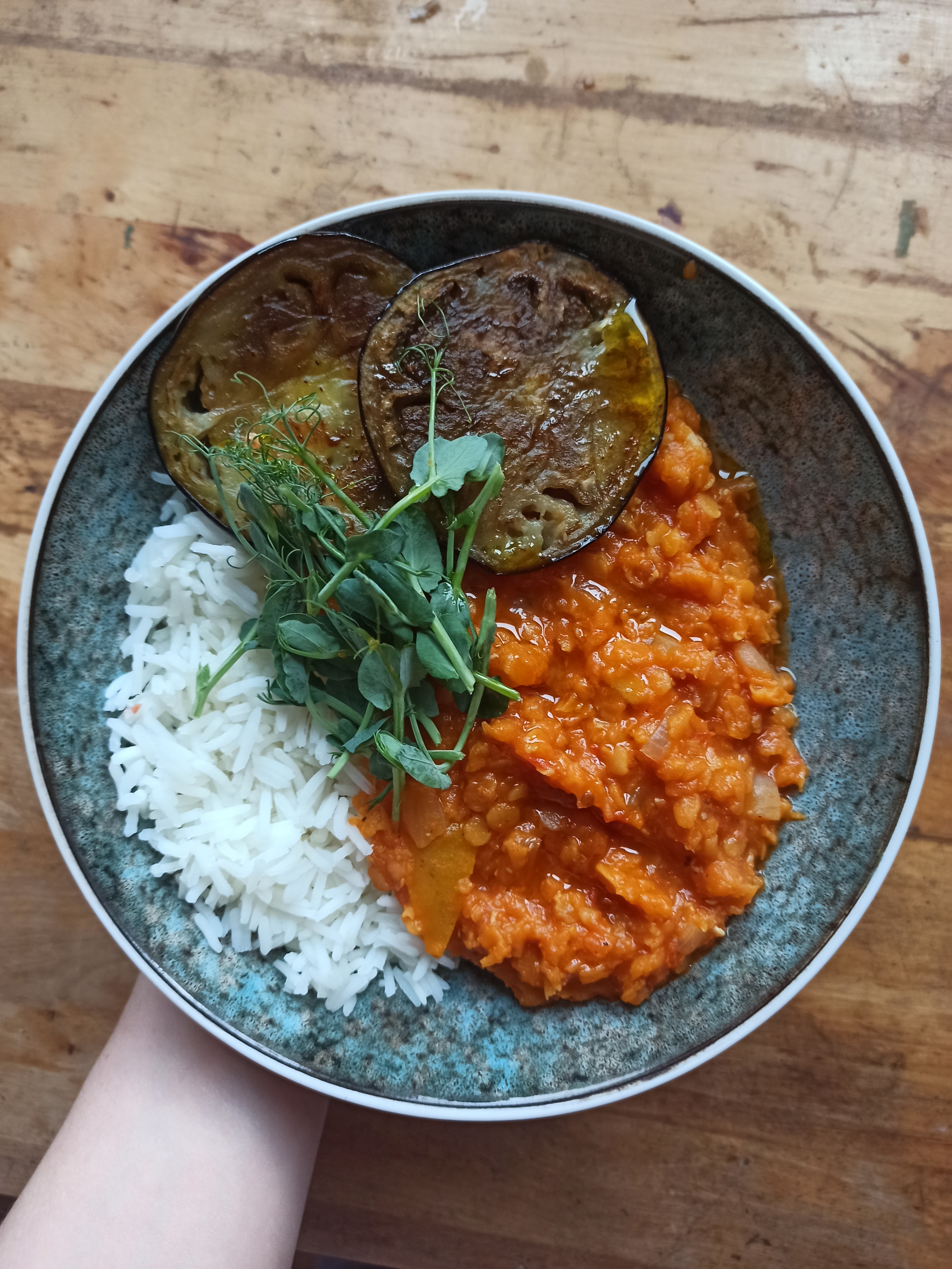 Dal z czerwonej soczewicy z pieczarkami i papryką