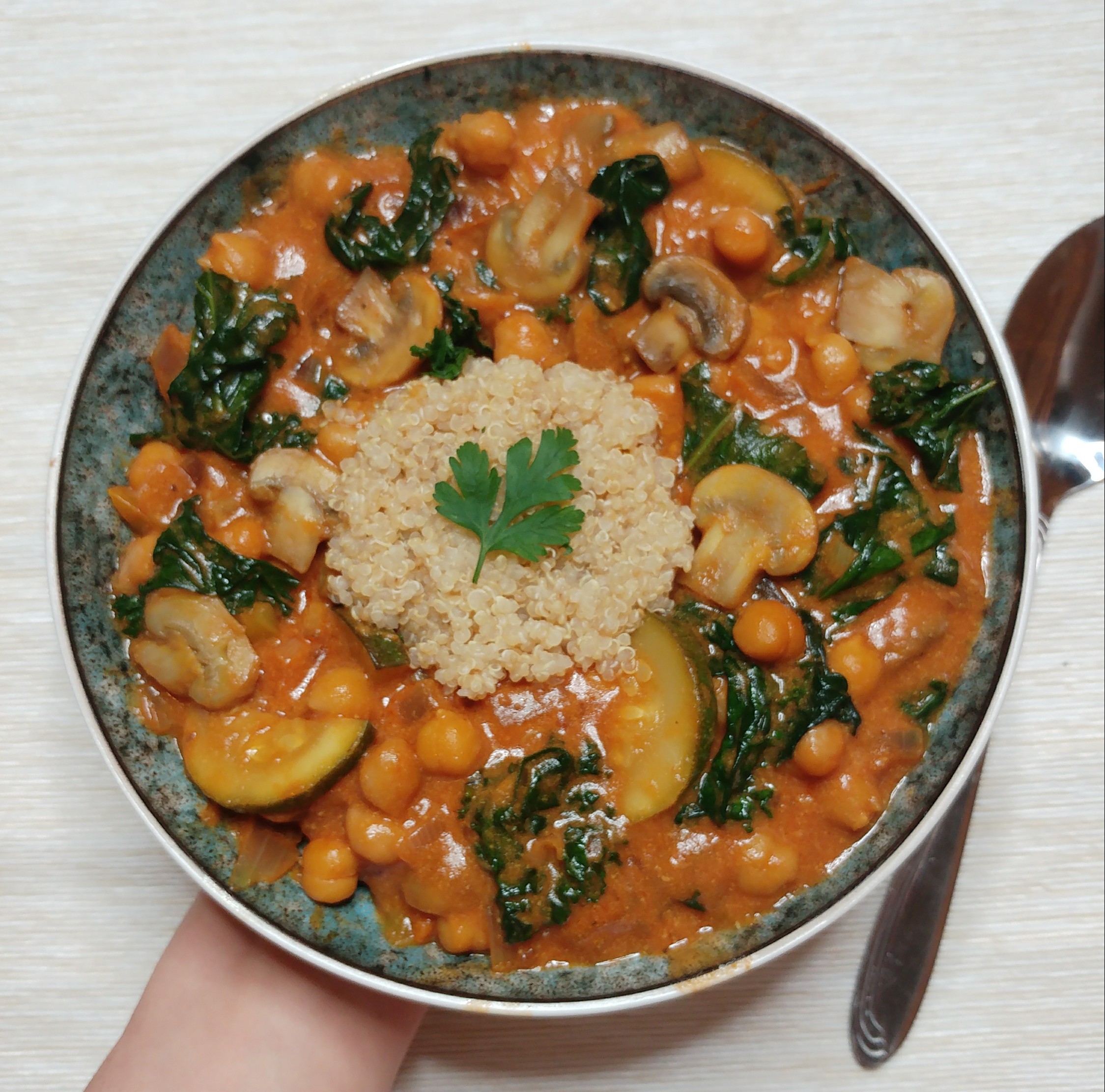 Jeśli szukacie pomysłu na prosty i pyszny obiad możecie spróbować tego 😃. Dodatki możecie dowolnie zamieniać ale warto bazować na cieciorce, pieczarkach i zielonych liściach.